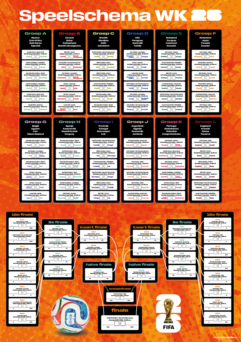 Onze WK speelschema posters zijn gegarandeerd van hoge kwaliteit drukwerk zodat ze lekker stevig zijn!