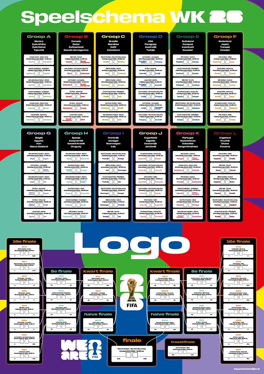 Onze WK speelschema posters zijn gegarandeerd van hoge kwaliteit drukwerk zodat ze lekker stevig zijn!