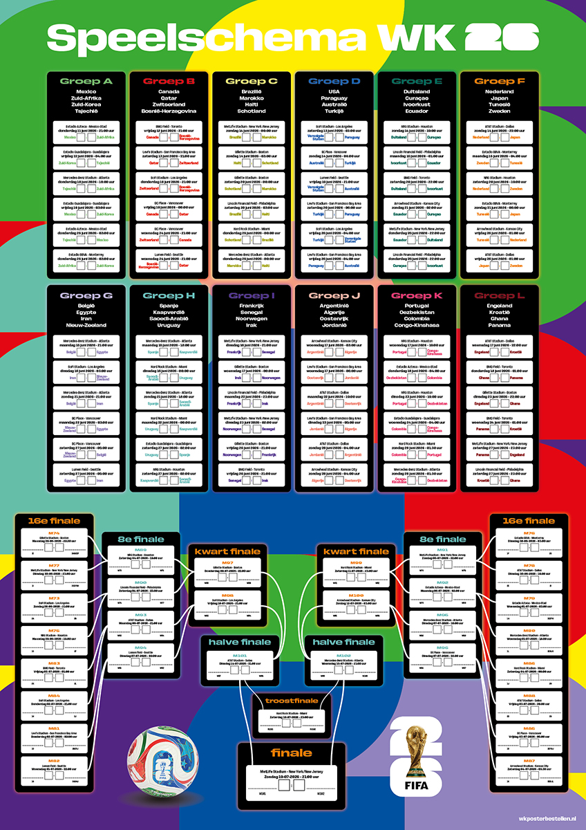 Onze WK speelschema posters zijn gegarandeerd van hoge kwaliteit drukwerk zodat ze lekker stevig zijn!